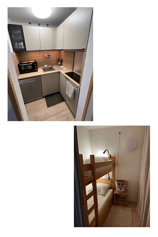 Studio confortable entièrement rénové en 2025 pour 4/5 personnes au dernier étage (18eme) du Lunik-Orion, vue pistes, au pied des remontées