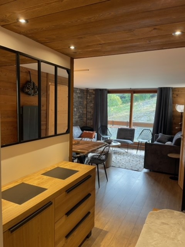 Appartement haut de gamme pour 10 personnes. 4 chambres / 2 salles de bains / 2 WC. Grande cuisine avec équipement complet ( induction, lave-vaisselle, nespresso, tireuse à bière, vaisselle de qualité, grande table pour 10 personnes). Séjour lumineux, décoration soignée, sofa convertible. 2 TV, wifi fibre, chéminée éthanol, lave-linge séchant, 2 casiers à skis