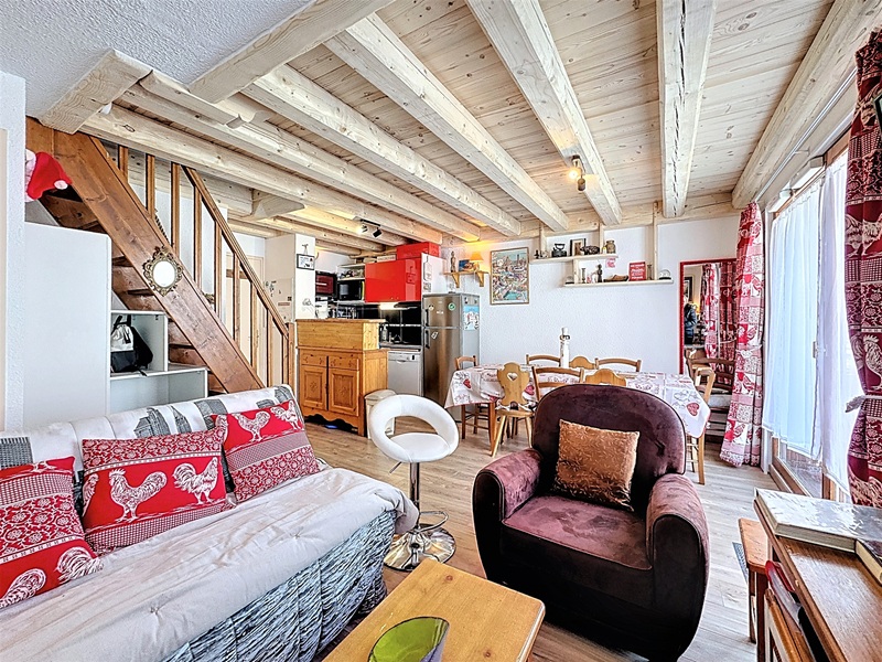 Domaine des Sybelles, Le Corbier (1574 m). 56 M2 (environ) pour 8/10 personnes en duplex (ensoleillé avec exposition Sud-Ouest), appartement  au 4 éme étage en  haut  de station «résidence Les pistes », décoration  chalet (lambris au  mur- classement ministériel 3 étoiles et label corbier) et volets électriques et rideaux. Départ et retour ski au pied possible si enneigement, 250 m du centre (Boulangerie, Sherpa …) et à  200 m de remontée principale et de l’école de ski (front  de  neige). 1 er niveau de 29 m2 avec parquet, ensoleillé et loggia de 5m2 réparti en : cuisine-bar ouverte tout équipée (plaque vitrocéramique, micro-onde combiné/four et 2  eme four, lave-linge et  lave-vaisselle, hotte aspirante), salon/salle à manger avec 2 canapés dont un lit BZ de140/190,fauteuil confort,  placard, étageres sous-pente, toilette  indépendant et salle  de  bain avec  baignoire-douche. 2 eme niveau de 27 m2 avec  accés escalier (sécurité enfant à l’étage) composé : de  2 chambres de 8 m2 avec fenêtre donnant sur les  pistes avec lit 2 personnes (140/90), et 1  chambre « coin montagne » de 6 m2 avec 2 lits superposés (4  couchages de 80/190), avec étagères et rangements dans chaque chambre ; d’un  toilette indépendant, et  d’une salle  de  douche  avec  petit lavabo. Chauffage par  radiateurs  électriques et économiques complété d’un chauffage au sol. Grand casier à ski fermé au 1 ere étage de l’immeuble avec accés direct aux pistes. Le ménage et la taxe de séjour sont obligatoires (en sus du prix de location).